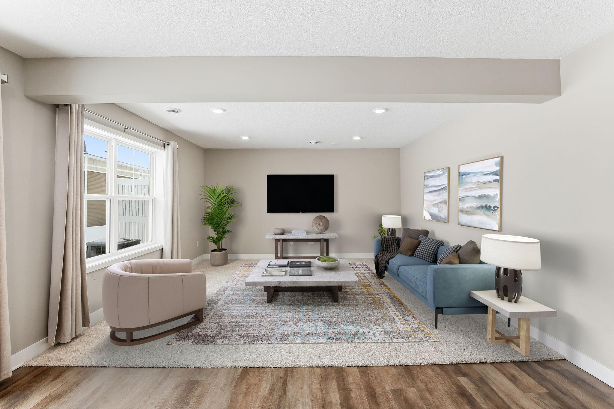 Welcome home to this beautiful, move-in ready 3-bedroom, 2.5-bath townhome with a thoughtfully designed floor plan and multiple living spaces. Freshly painted and impeccably maintained, this home includes stainless steel kitchen appliances, a water softener, and window treatments throughout. The bright, open main level welcomes guests with a spacious entry and convenient half bath. The kitchen is the heart of the home, featuring a large center island, white cabinetry with added pantry storage, and seamless flow into the dining and living areas. Sliding doors lead to a private patio overlooking open green space, perfect for enjoying sunsets and nature views. The main level also offers a generous utility area and direct access to the 2-car garage. Upstairs, a versatile loft-style family room provides the perfect space for a home office, second living area, or playroom. The primary suite is a true retreat with a walk-in closet featuring a private en-suite bath with dual sinks and a large walk-in shower. Two additional spacious bedrooms, a full bath, and a convenient upper-level laundry room complete this level. Enjoy a low monthly HOA fee that covers lawn care, snow removal, exterior maintenance, and access to the outstanding Watermark Community amenities, including a 24-hour key-fob fitness center, clubhouse, central lake, scenic ponds, parks, playgrounds, basketball and pickleball courts, picnic areas, and miles of walking paths. Ideally located near grocery stores, freeways, and Metro Transit park-and-ride. Quick close possible. Well maintained and truly move-in ready—schedule your showing today and don’t miss this one!