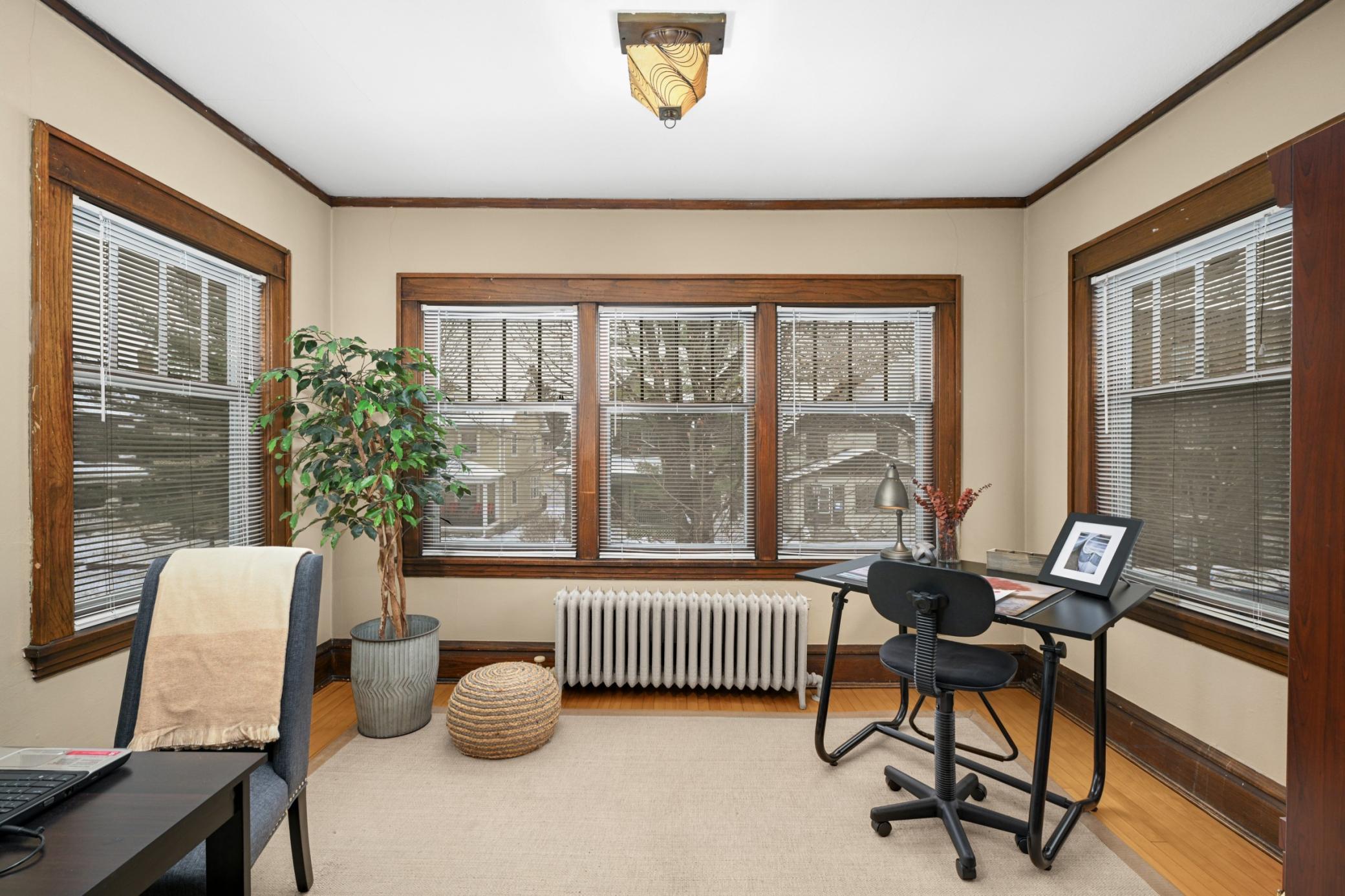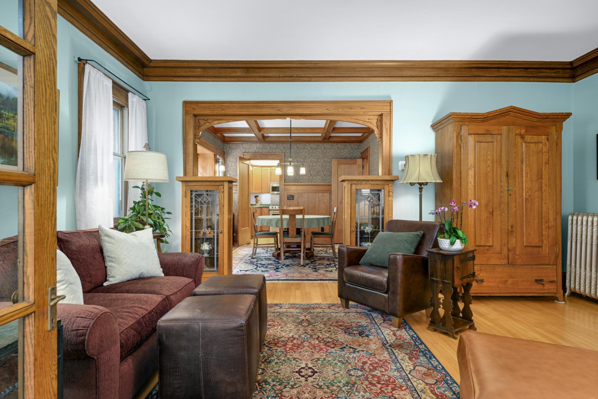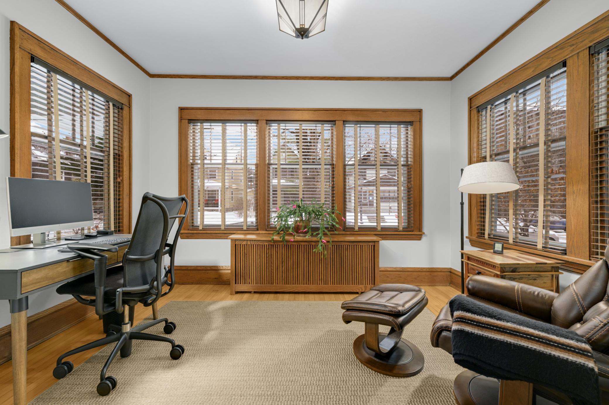 For the last 35 years, this striking triplex has received the love, care and stewardship that only an owner-occupied property can provide. Wonderfully updated and restored, this one will impress even the most discriminating of buyers. Rich woodwork, gorgeous built-ins, charming wainscot and breathtaking coffered ceilings set the tone for the units from the onset. The main floor owner’s unit features a thoughtfully renovated kitchen with mission styled cherry cabinets, stainless steel appliances, and quartz counters. The main floor bath has been renovated as well and features heated floors. The sun-filled sunrooms on the first and second floors offer outstanding space for home offices. The owner has spent time living in and renovating the second-floor unit as well, so that level also has an ‘owner’s’ level of condition. Both the first and the second level have a stacked layout with each other, so both offer the same layout. The building is a ‘true’ triplex, so the 3rd floor unit is a fully functional rental unit with 2 stairways for egress. This one-bedroom unit has also been fully refreshed and is ready for rental. Lower level offers ample storage, workshop area, exercise area, and ¾ bath. The site has plenty of off-street parking in addition to the 2-car garage. Roof was new in ’24. The location offers tremendous walkability, shopping, restaurants and entertainment within a short walk. This triplex is truly special